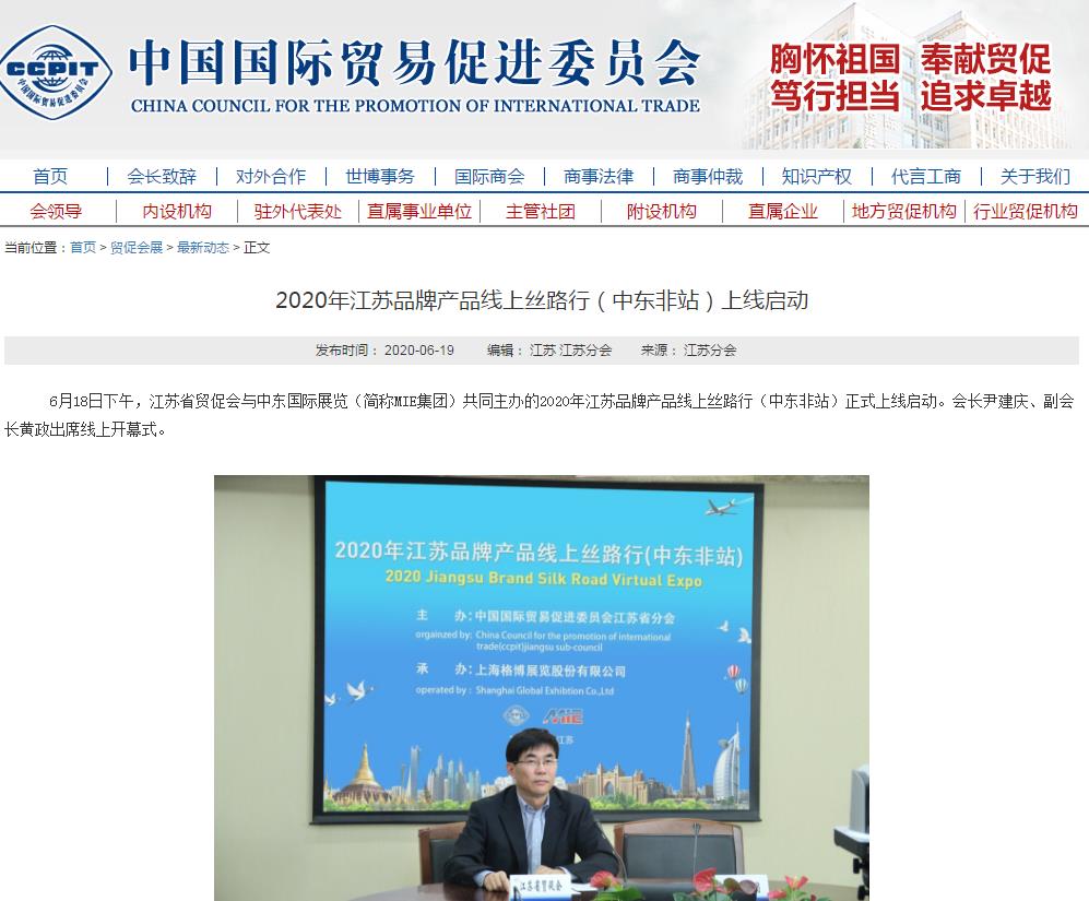 2020年6月22日,由江蘇省貿(mào)促會(huì)聯(lián)合迪拜MIE集團(tuán)共同主辦的“2020年江蘇品牌產(chǎn)品線上絲路行”(中東非站)線上配對(duì)暫告一段落。