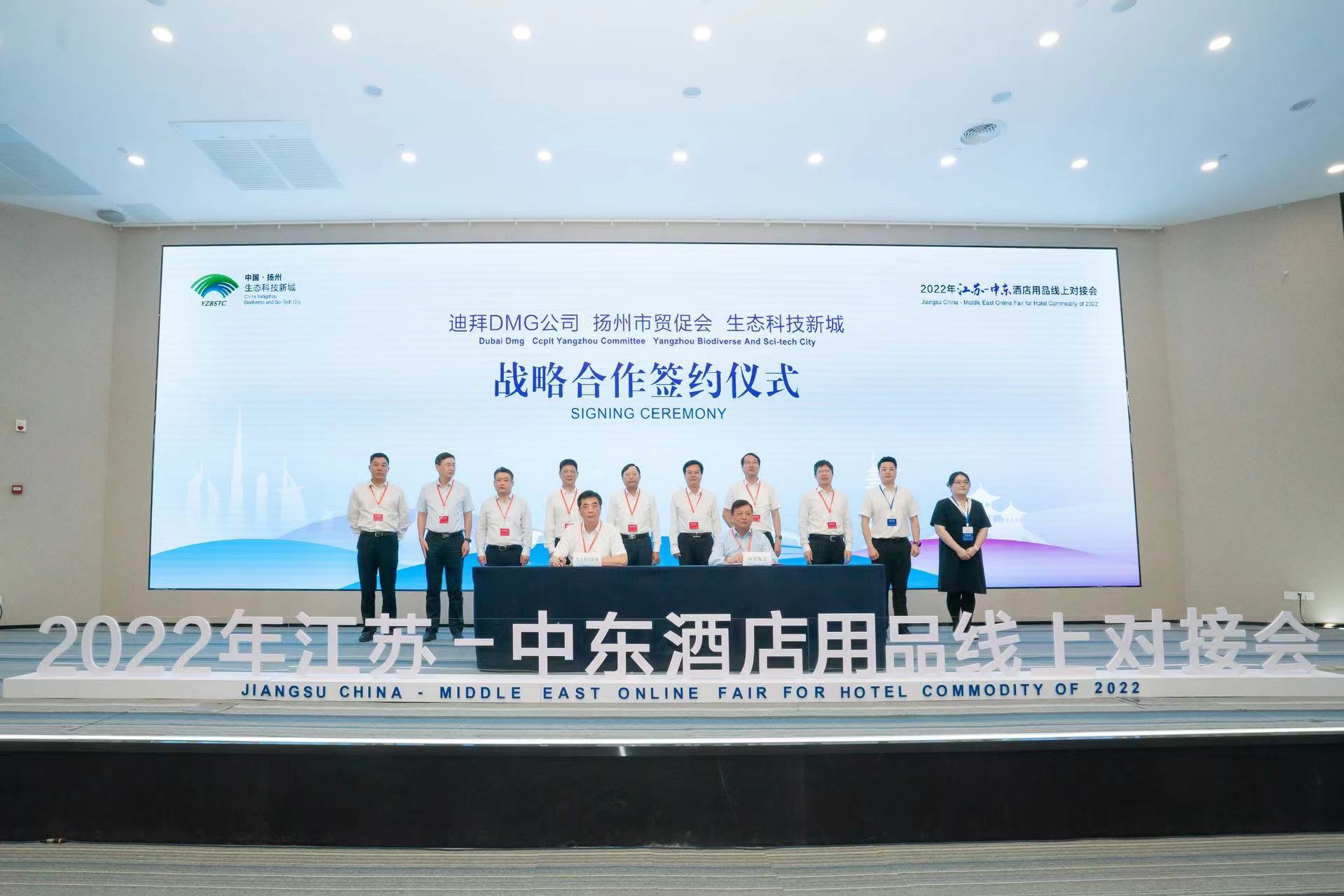5月30日下午,由江蘇省貿促會、揚州市貿促會和揚州市生態(tài)科技新城聯(lián)合主辦的“2022年江蘇—中東酒店用品線上對接會”在揚州市生態(tài)科技新城正式啟動。會上,揚州生態(tài)科技新城、揚州市貿促會與迪拜DMG三方簽署戰(zhàn)略合作協(xié)議,外方嘉賓通過視頻線上觀摩。