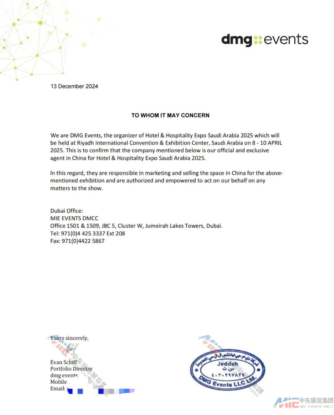 ▲沙特酒店展授權(quán)函