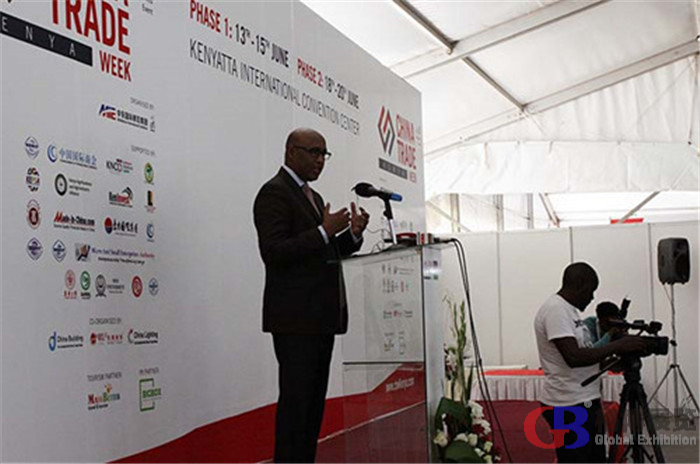 第四屆肯尼亞中國(guó)貿(mào)易周(CTW)于2018年6月13日在肯尼亞首都內(nèi)羅畢的肯雅塔國(guó)際會(huì)議中心隆重開(kāi)幕??夏醽喒I(yè)化和企業(yè)發(fā)展部部長(zhǎng)阿丹·穆罕默德、肯尼亞工商聯(lián)副主席詹姆士·穆儒,以及肯尼亞私營(yíng)企業(yè)家聯(lián)合會(huì)、肯尼亞投資促進(jìn)局、肯尼亞汽車(chē)協(xié)會(huì)、肯尼亞農(nóng)業(yè)綜合企業(yè)、建筑與土木工程、非洲棉花行業(yè)協(xié)會(huì)和肯尼亞小微企業(yè)促進(jìn)局等官員和代表出席了開(kāi)幕典禮。